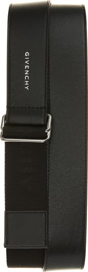 The label’s utilitarian edge takes a refined turn with this mixed-media belt where smooth leather and rugged canvas collide and a gleaming double-ring buckle anchors the look.
