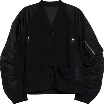 Chitose Abe employs her hybridized wizardry to create this cotton‑rich cardigan with jacket aspirations manifested via lightly insulated nylon‑twill panels and utilitarian accents borrowed from bomber styles.