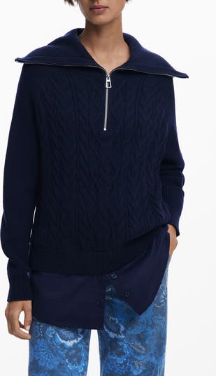 A woven detail peeks from the hem of this oversized cable-knit sweater to give it a comfortably relaxed layered look with the ease of just one piece.