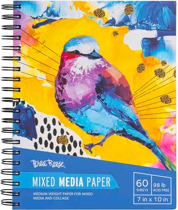 BREA REESE: 7 X 10 MIXED MEDIA PAPER PAD 60 SHEETS - For artists on the go, the Brea Reese Mixed Media Paper Pad 7x10 provides a versatile and portable option. Featuring 60 sheets of 98 lb acid-free paper, this medium-weight pad is perfect for a variety of art forms including watercolor, acrylic, pen, and collage. Its spiral-bound design makes flipping through pages and sketching on the go easy, while the acid-free nature of the paper ensures your artwork will stay vibrant and preserved for years to come. This smaller size is ideal for travel, art classes, or simply creating wherever inspiration strikes. Despite its compact size, the 98 lb paper is sturdy enough to handle multiple layers and different media without warping or bleeding. Whether you're experimenting with a new technique or completing a finished project, this mixed media pad is designed to adapt to your creative needs, making it an excellent choice for artists of all experience levels. INCLUDES (1) 60 Sheet Mixed Media Paper Pad.