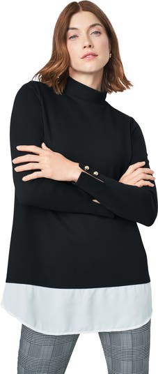 Achieving a layered, sophisticated look is easy with the Jessica London women's plus size Mixed Media Ponte Top. This piece pairs perfectly with our Ponte Leggings — complete your outfit with your favorite pumps or knee-high boots.