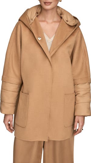 Donna Karan New York Mixed Media Puffer Sleeve Wool Blend Coat, Alternate, color, Fawn