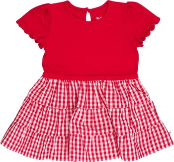 Mixed Media Short Sleeve Tiered Dress is the ideal choice for girls who love classic style with a playful twist. This dress exudes a timeless charm, featuring a delightful tiered design that's perfect for twirling. The short sleeves and lightweight, unlined construction make it a comfortable pick for warm summer days. Tailored for durability, the fabric resists fading and snagging, ensuring that it looks great even after multiple wears. The dress includes a chic keyhole closure at the back for easy dressing. Its 4-way stretch fabric offers freedom of movement, making it perfect for active girls. Accentuated with scallop and ruffle details, this piece is a must-have for any young fashionista. Whether it's a casual outing or a special occasion, this mixed media dress for girls is a delightful addition to any wardrobe.
