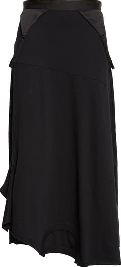 A bralette overlay with dangling straps adds a playful flourish to this midi skirt done in a bias-cut asymmetric silhouette.