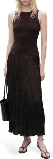 A smooth knit bodice gives way to a swishy skirt in a dress that's easy to style up or down.