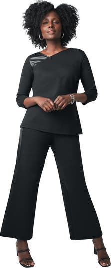 All-day comfort and elevated polish meet in this goes-everywhere Jessica London women's plus size Mixed Media Wide Leg Pant. The knit ponte fabric feels great all day, and faux leather adds an edgy touch to your everyday outfits. Pair it with our Mixed Media Top for a perfect outfit for work to weekend.