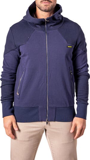 Waffle-knit panels brings sporty style to this zip-up hoodie with plenty of stretch to accommodate life on the go.