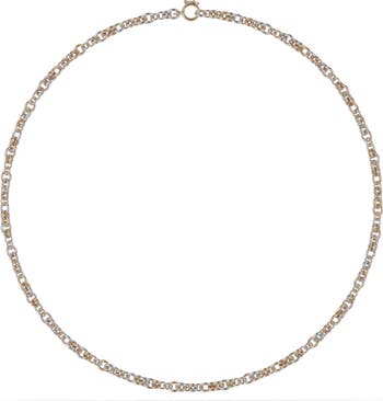 Single and double mixed-scale links of sterling silver and 18-karat yellow and rose gold create an industrial aesthetic on a versatile necklace that's handcrafted in downtown Los Angeles.