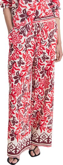Vibrant scrollwork adds colorful style to comfy pants closed with an easy drawstring.