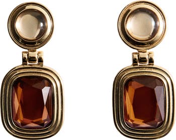 Mixed resin stones framed in a goldtone finish form sculptural drop earrings with a refined geometric silhouette.