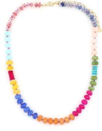 A colorful mix of polished stones brings playful whimsy to a beaded necklace that's perfect for everyday wear.
