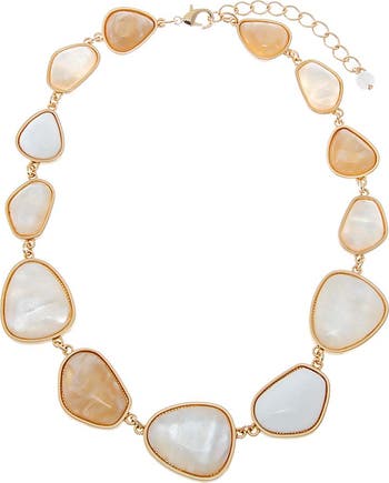 The Mixed Stone Organic Shape Statement Necklace by Adina Eden adds a playful spark to your everyday Necklace lineup. Curated for versatility and flair, this women's fashion necklace comes in White. Whether you're grabbing coffee or dressing up for dinner, this piece adapts to your mood, your outfit, and your pace—no questions asked. Style this gold plated necklace with styles from the Lariat Necklaces collection to make your everyday styling effortless. It supports your personal style without ever overpowering it.