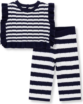 Mixed stripes and ruffles add to the fun of this knit set that will showcase baby's budding sense of style.