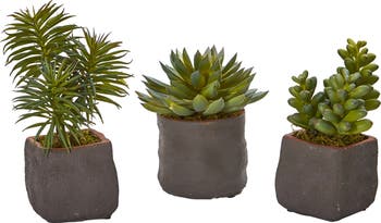 Contained with in a unique ceramic planter with natural moss included, each piece of this artificial succulent set looks incredibly lifelike. With three varieties of dense green succulents that differ in shape, this set can look striking in your office when clustered together on your desk next to your nameplate and business card holder.