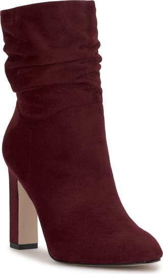 A slouchy shaft adds stylish dimension to an almond-toe bootie lifted by a svelte demi heel and fastened with a full-length side zipper.