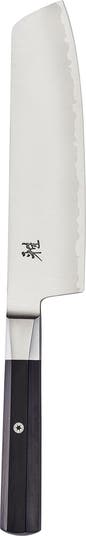 Advanced FC61 fine carbide stainless steel - 61 hardness on the Rockwell scale - provides unsurpassed corrosion and chip resistance. This cutting-edge steel ensures the hand-honed blades retain their impressive sharpness for a long time. Thanks to an innovative, ice-hardened process, the FRIODURx2 blades offer remarkable durability, sharpness, and cutting performance.The stunning blades are finished with a true katana edge, homage to the samurai swords made in Seki centuries ago, and feature an embossed MIYABI logo. Stylishly stamped with a silver mosaic pin, the exquisite octagon-shaped handle feels as good as it looks. The Pakkawood handle supports both Western chopping and Asian rocking cuts - experience ergonomic perfection with each slice. Handcrafted in Seki, Japan.