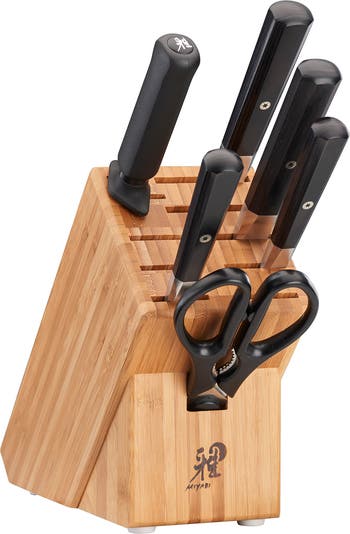 This perfectly balanced knife block with seven essential pieces combines sharpness, comfort and functionality.