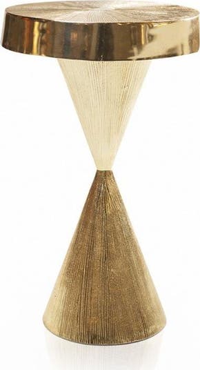 With a striking silhouette and radial texture , the Miyake Accent Table is a modernist match made in heaven. The cocktail-approved height makes it perfect for happy hours and nightcaps alike. Each of our creations is designed in our San Francisco studio. Master craftsmen using centuries old technique of sand casting create the original mould and skilled artisans hand create every piece, with pride, in our family owned factory. |Dimensions : 21" H; 12.5" L; 12.5" W |Finish : Goldplate |Material : Aluminum |Use and Care Given its handmade and hand-finished nature, variations in the piece are to be expected and celebrated. |No two pieces are exactly alike.