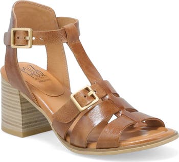 A stacked block heel and cushioned footbed keep you stepping comfortably in this hand-burnished sandal that seamlessly transitions you from desk to dinner.