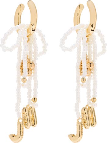 Accessorize in retro-chic style with these bead and freshwater pearl drop earrings complete with balloon-inspired logo charms.