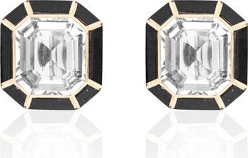 An onyx and hand-polished 18-karat gold frame highlights the bold beauty of these sparkly stone stud earrings.