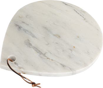 This White Mélange Marble Board with Handle is a versatile and stylish addition to any home. Crafted from food-safe marble, each board boasts a unique white mélange pattern, ensuring no two pieces are exactly alike. The 14.00-inch-long, 12.00-inch-wide surface offers plenty of room for slicing bread, chopping vegetables, or arranging a cheese platter. The added convenience of a handle and leather tie allows for easy storage or display when not in use. Whether used for cutting or serving, this marble board is a functional piece of art that will enhance the experience of preparing and sharing food.