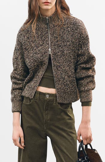 An earthy-hued mélange lends dimension to a cotton-blend cardigan fashioned with a two-way zipper so you can play with the fit.