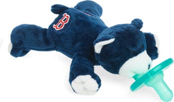A snuggly soft stuffed animal reps baby's favorite team as it holds tight to a silicone pacifier for comfort and fun that's easy to grab and hard to lose. This unique toy is carefully weighted to be positioned close to the baby for gentle soothing in this beloved, travel-ready design. The nondetachable silicone pacifier is perfect for babies who are not teething, regardless of age.