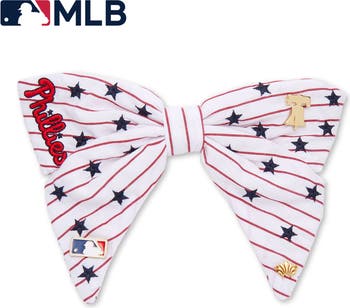 Step up to the plate with our officially licensed Major League Baseball Collection. This Philadelphia Phillies bow barrette was designed by creating embroidery using the official logos and artwork from the MLB archives.