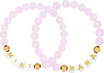 Celebrate your special bond with this enchanting "Mommy & Me" Bracelet Set. This coordinated duo features a sophisticated Emma Rae bracelet for Mom and a matching Little Miss Zoe piece for her mini. Proudly crafted in California, both bracelets feature a curated blend of polished 14K gold filled beads and genuine pink semi-precious gemstones, centering on "MAMA" and "MINI" letter beads for a sentimental, high-end look. Features & Details 14K Gold Filled Construction: Both bracelets are crafted with high-quality gold-filled beads that offer the rich look of solid gold with superior durability. Hypoallergenic & Tarnish-Resistant: Safe for sensitive skin (for both Mom and child) and designed to maintain a brilliant luster through daily wear. Soft Pink Semi-Precious Gemstones: Features hand-selected pink gemstones, chosen for their delicate color and natural beauty. Coordinating "MAMA" & "MINI" Sentiments: Elegant white and gold letter beads create a beautiful focal point that celebrates your unique connection. Comfortable Stretch Fit: Both pieces are designed on professional-grade stretch cord for effortless wearability and a secure fit. Artisan California Quality: Each set is hand-assembled in our California studio with meticulous attention to detail. Ready for Gifting: Arrives beautifully prepackaged on signature Emma Rae and Little Miss Zoe cards, making it the perfect gift for Mother’s Day, birthdays, or new milestones. Specifications Set Includes: 1 "MAMA" Bracelet and 1 "MINI" Bracelet. Materials: 14K Gold Filled, Natural Pink Gemstones, Acrylic Letter Beads. Mama Size: 6.5-inch circumference (Standard Women's Fit). Mini Size: 6-inch circumference (Kids' Fit). Origin: Crafted in California, USA. Care Instructions To preserve the life of the gemstones and the brilliance of the gold, avoid contact with harsh chemicals, perfumes, and lotions. Store in a dry place and gently wipe with a soft cloth to maintain the golden glow.