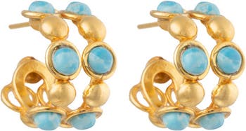 Gold plated brass pierced earring "Mini Creole" - These gold-toned hoop earrings feature a vibrant twist with alternating blue Larimar accents. The design offers a playful yet elegant look, perfect for adding a pop of color and charm to any outfit.
