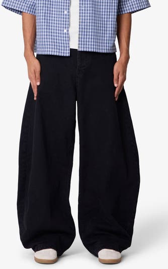 Truly baggy and always comfortable, these barrel-leg jeans cut from nonstretch denim sit at the hips and stay roomy and relaxed all the way to the puddled hems.