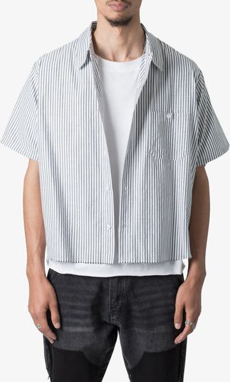 Keep the laid-back vibes going in this button-up shirt patterned with subtle stripes and framed by relaxed short sleeves.