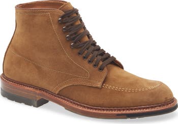 This rugged suede boot crafted in the USA features contrast laces, moc-toe stitching and Trubalance Last Commando lugged outsoles for traction.