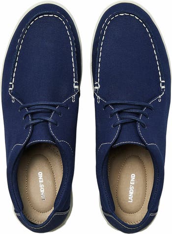 Are you on the hunt for a workwear-inspired canvas shoe with sneaker-like comfort and support? Look no further. Our Men's Moc Toe Canvas Lace Up Sneakers are the ideal sneaker for men with style who also don't want to give up comfort. Part sneaker, part moc toe, they are versatile enough for any occasion, like going into the office but meeting friends at happy hour afterward. This lace-up has you covered on all sides thanks to its waxed canvas upper, subtle stitched toe, and sporty, sneaker-like midsole. An enhanced cushioned EVA foam insole with arch support adds an athletic shoe level of comfort and support where you need it most, from the heel to the arch. Perfect for everyday wear, they provide a laid-back look that pairs effortlessly with jeans, shorts and slacks. Offered in one color, Deep Sea Navy. Men's shoe sizes range from 8-12, with half sizes available and whole size 13.