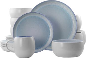 Add a beautiful accent to your table with the Elama Mocha 16 Piece Stoneware Dinnerware Set in Blue. A full service for 4, each dish is creatively crafted into a unique and contemporary shape, adding a little something more special to meal time. Beautifully colored in elegant Mocha with an inner Mauve design, this tableware set will surely set a tone at dinner time. Each plate is microwave safe for easy heating and dishwasher safe for easy cleaning.