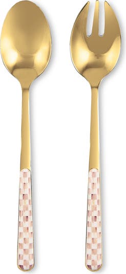 Dish up your daily greens with this elegant serving set made from durable stainless steel and decorated with signature checks on the handles.