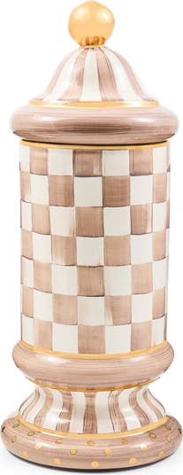 MACKENZIE CHILDS Mocha Check Ceramic Column Canister, Main, color, Mocha