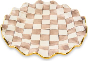 Hand-painted color-dragged checks further the retro vibes of this handmade fluted dinner plate that adds an elegant touch to your table.