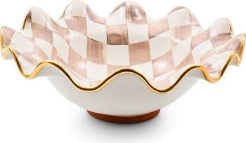 Mocha Check Ceramic Fluted Serving Bowl