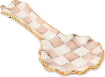 MACKENZIE CHILDS Mocha Check Ceramic Spoon Rest, Main, color, Mocha