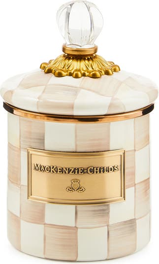 Stash your pantry staples in the hand-painted color-dragged checks of this canister that gives your shelves or counters plenty of panache and personality.