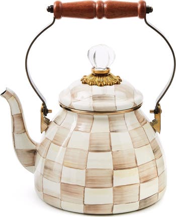 Mocha Check Enameled Steel 2-Quart Tea Kettle