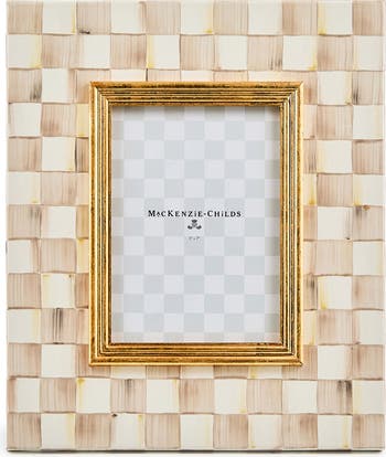 A refined linen easel back works horizontally or vertically in this frame that showcases your favorite photo highlighted by gilt details and hand-painted color-dragged checks.