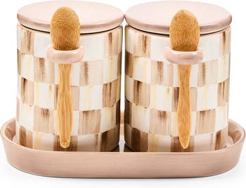Mocha Check Farmhouse Set of 2 Canisters with Spoons