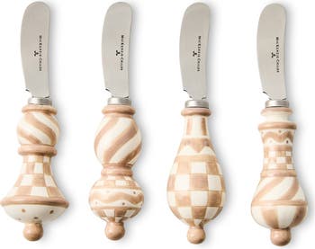 Shapely ceramic handles feature signature check in this party-ready set of spreaders.