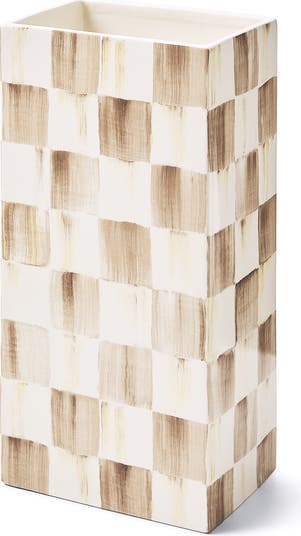 Style your favorite florals in this ceramic vase hand painted with signature checks.