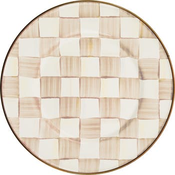 Serve your favorite salads and side dishes on this charming hand-painted plate with signature mocha checks and gilt detail at the edges.