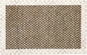 A woven sisal-and-wool center gives this rug natural texture and durability, while a check-motif border frames the design with graphic contrast.