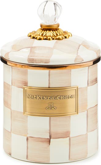 Stash your pantry staples in the hand-painted color-dragged checks of this canister that gives your shelves or counters plenty of panache and personality.